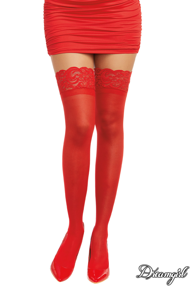 Sheer thigh high with stay up silicone lace top. (Thong not included) - STAY UP - 85% Nylon, 15% Spandex O/S, QUEEN