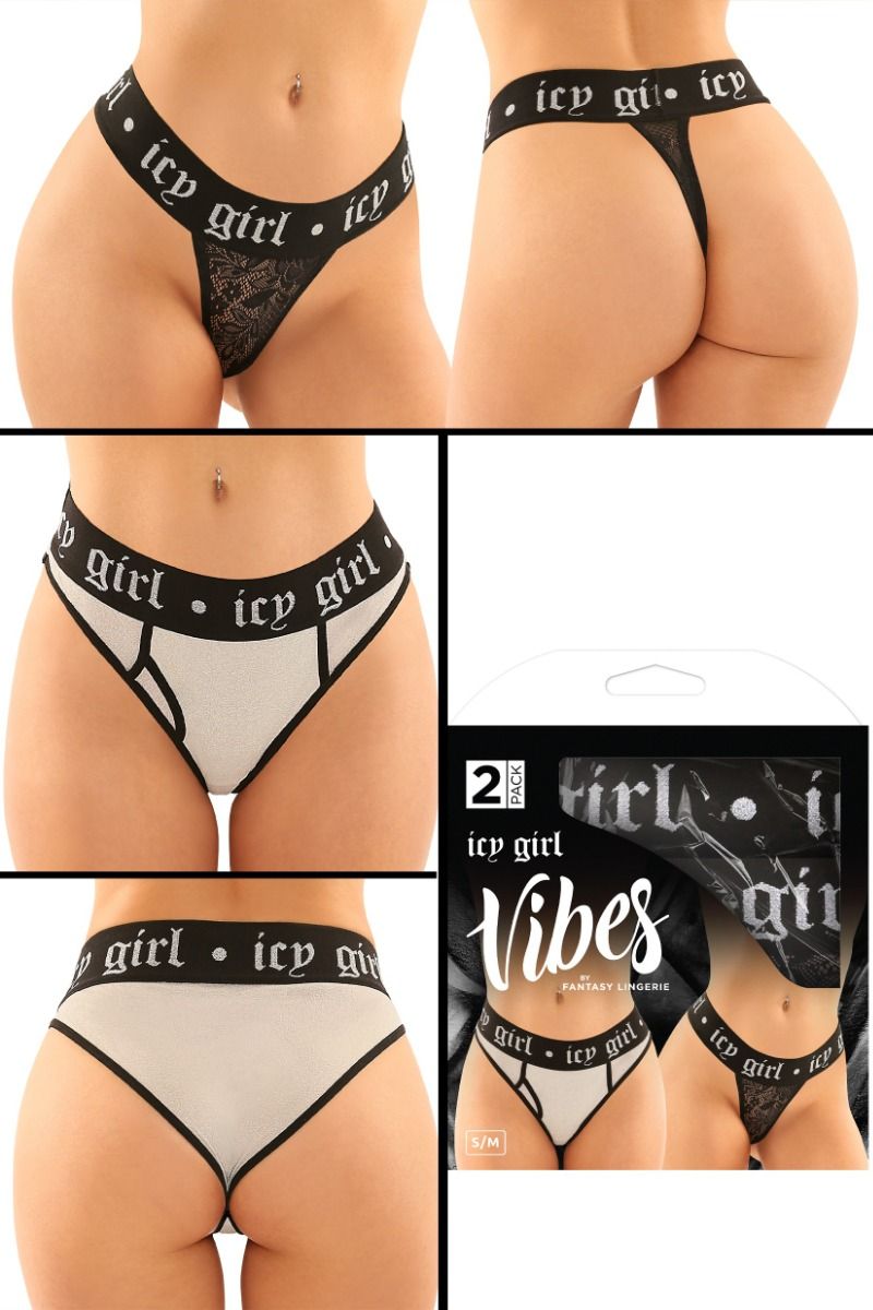 Panty pack featuring two panties with an elastic waistband featuring a bold "Icy Girl" print. (2PC Set; all designs included in one package)