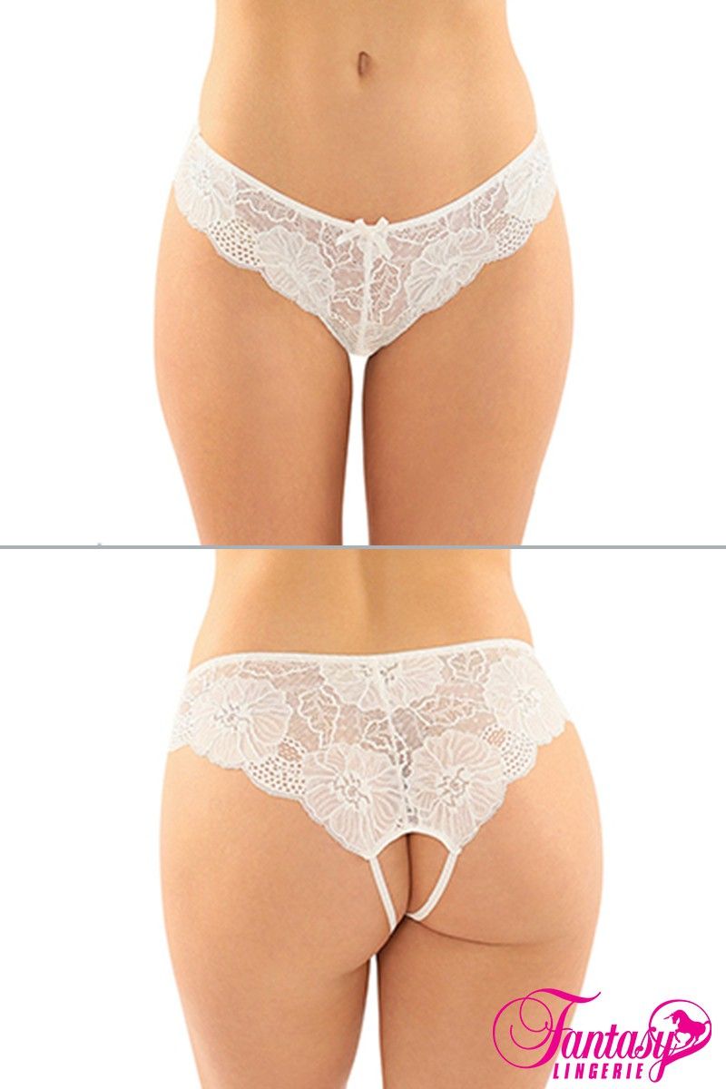 Low-waisted floral lace panty with a lined cotton gusset and an open crotch
