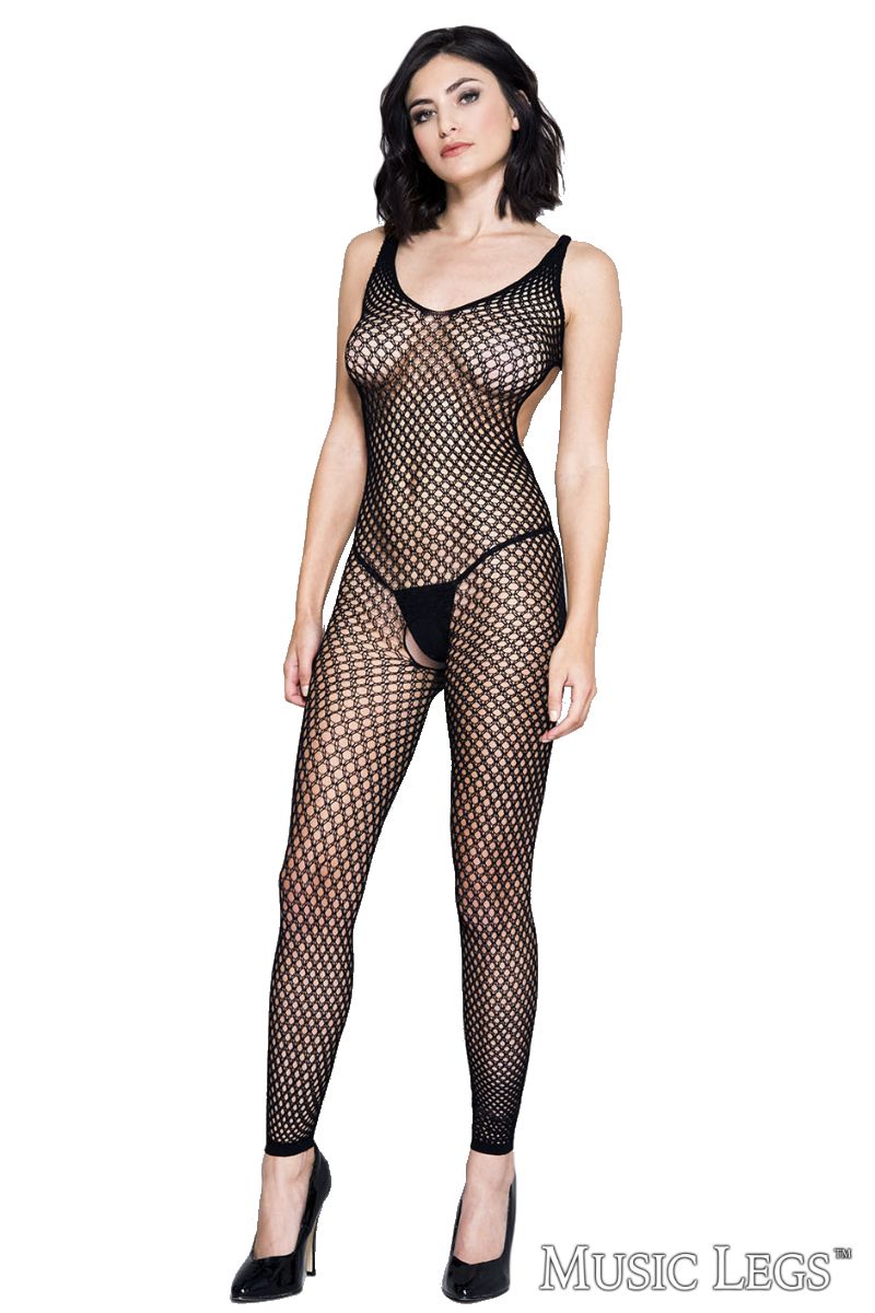 Footless crochet crotchless bodystocking. Illusion at back of a bralette and a low rise legging.