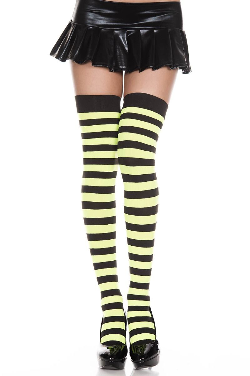 Opaque thigh high stockings with a thick top and wide stripes
