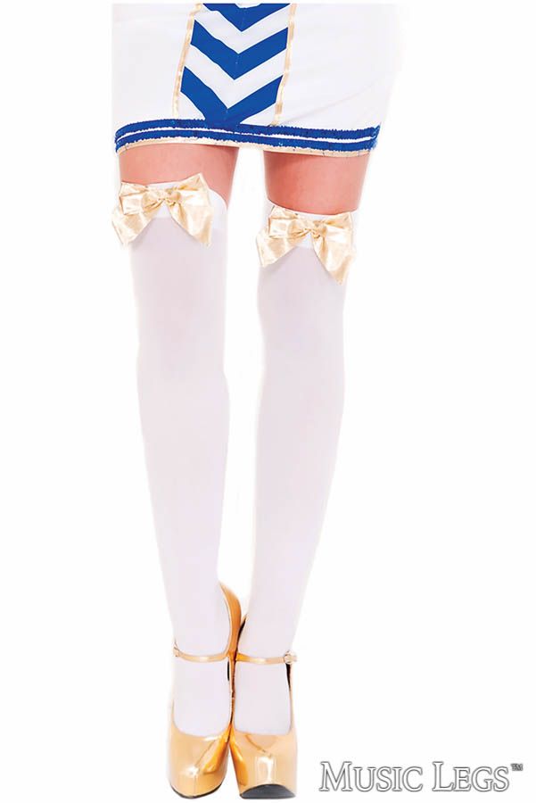 Opaque thigh high stockings with a satin bow on the thick opaque band
