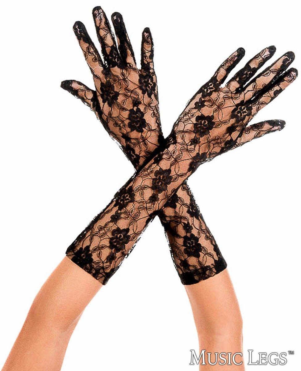 Elbow-length stretch lace gloves featuring delicate floral embroideries.